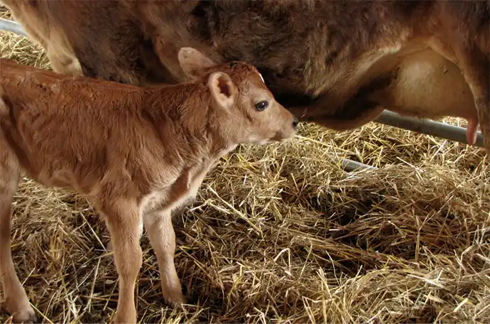 - Young calves are allowed to stay with their mothers and nurse from them for at least 4–6 months.